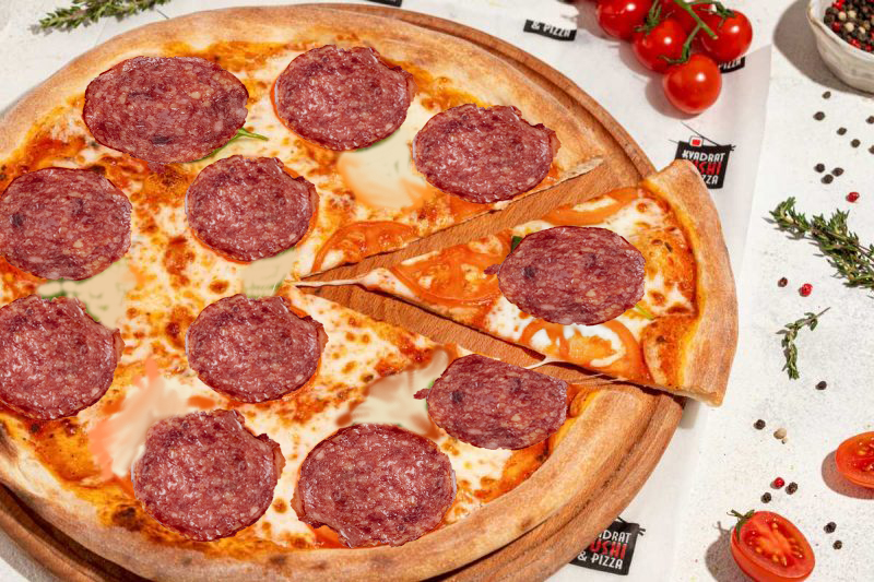 Неперевершений, насичений смак дає поєднання свіжого тіста, соковитої начинки, італійських спецій та ароматного сиру, яким щедро присипана піца й запечена до ідеальної скоринки.