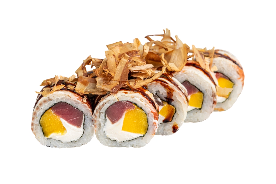 300гнорі, рис, крем-сир, манго, вугор, тунець, стружка тунця, соус кімчі, соус унагіДодати в кошик 225₴