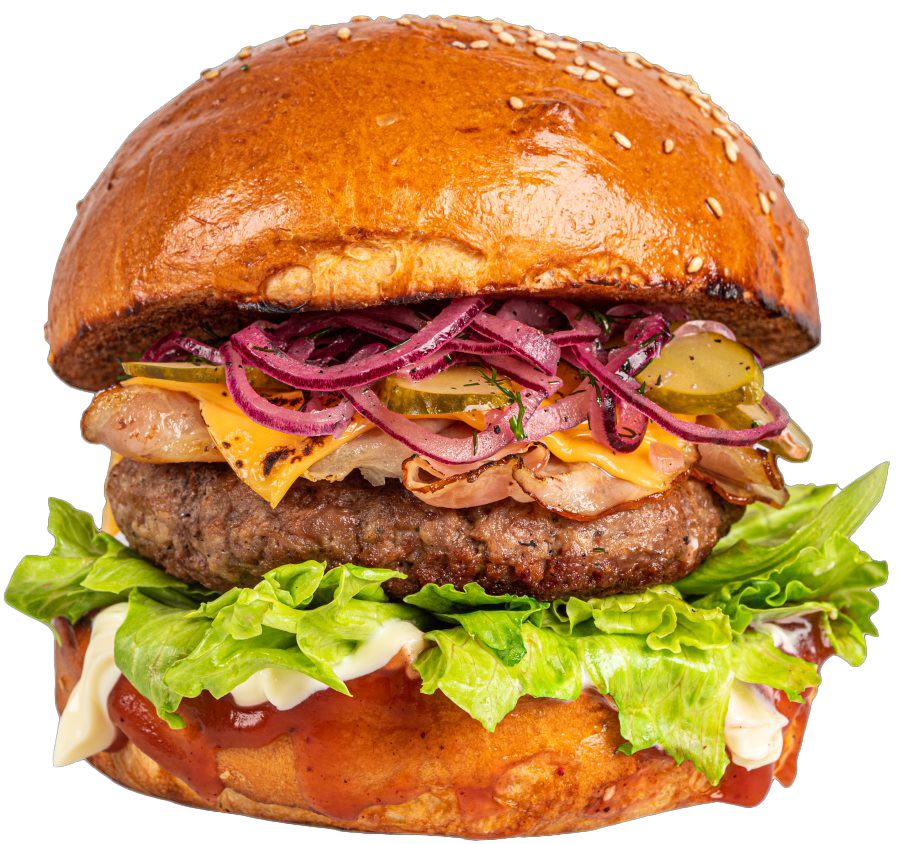 Новинка!400гяловича котлета, пухка булка, бекон, тостовий сир, соус класичний, айсберг, огірок маринований, маринована цибуляДодати в кошик 165₴