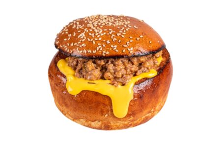 тушкована у пиві яловичина, пухка булка, айсберг, сир тостовий, помідор, американська гірчиця, японський майонез, халапеньйо