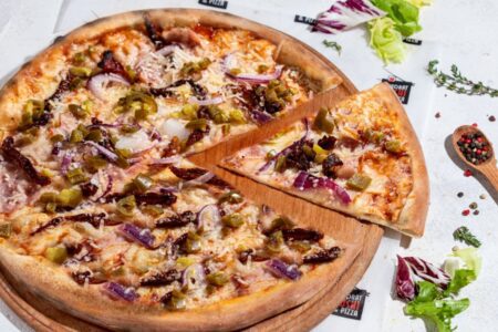 325г/540гмоцарела, бекон, салямі, мисливські ковбаски, помідори, синя цибуля, томатний соусОберіть опції 165₴