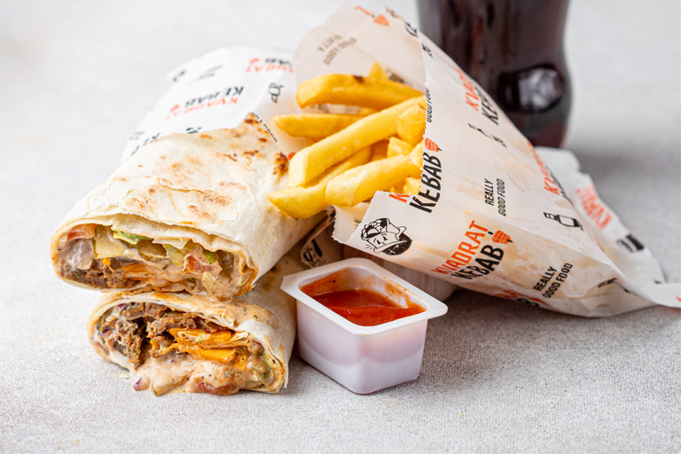 кебаб розмір M, картопля фрі, напій на вибір (Coca-Cola, Fanta, Sprite, Bonaqua)