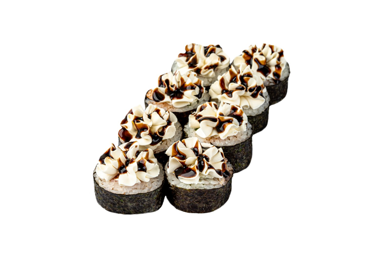 норі, рис, крем-сир, сніжний краб, огірок, соус кімчі, соус унагі