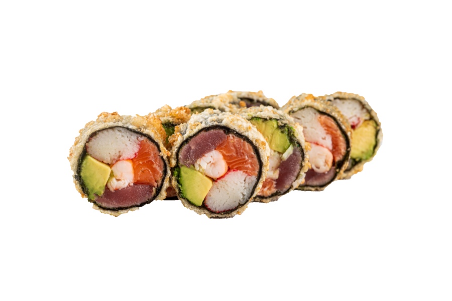 норі, сніжний краб, лосось, тунець, авокадо, варена креветка, кляр, сухарі панко